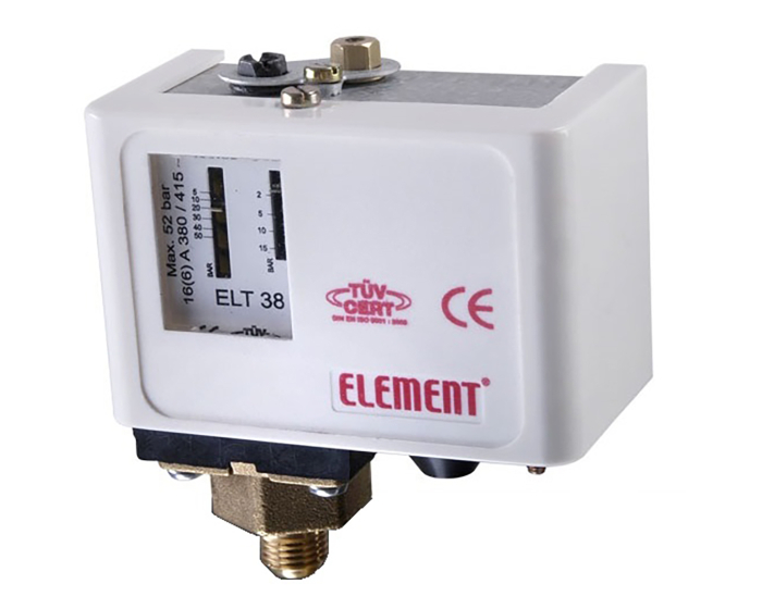 Pressure switch for all compatible fluids except propane. SPDT silver contacts, cutting capacity 230 Vac - 0,2 A. IP 40. Brass fitting 1/4 "G. Complies with EN 60947-1-5 standard.