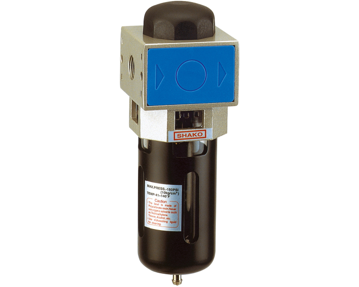 The UF filter is designed for the treatment of compressed air or neutral gases. Robust aluminium body. Maximum inlet pressure: 10 bar. Supplied with mounting bracket. Plastic bowl with semi-automatic drain.