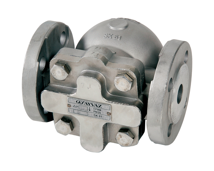 Automatic air vent with float, CF8M (1.4408) stainless steel body, built-in thermostatic air vent, PS: 25 bar, TS: 250°C, with flanges PN25 RF.